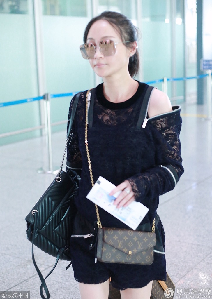姚笛独自现身机场热裤秀美腿 面色憔悴匆忙离开