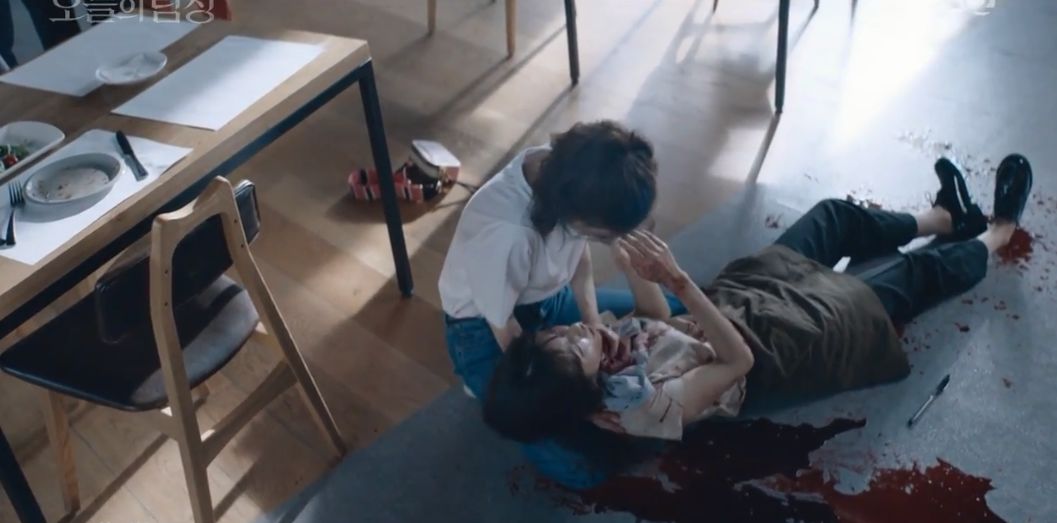 郑汝蔚的妹妹正在上班,结果却突然神色惊恐的拿起刀,"自杀"了。