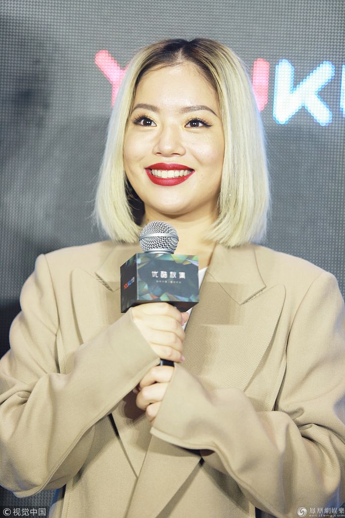 9月20日,杭州,王菊现身优酷秋集发布会。她从纽约走秀归来懒理恶评心情大好,涂大红唇穿小西装简单干练。