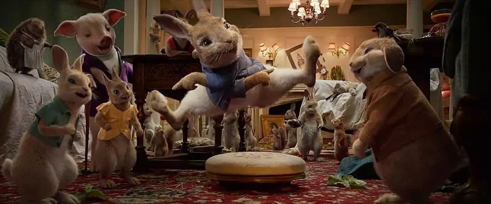 预告片中,似乎也是比得兔和朋友们开趴体先搞乱了McGregor的家,也就是这场戏让很多国外网友无法接受,因为他们的记忆中的比得兔不是一个爱开爬梯跳着怪异舞蹈的兔子。