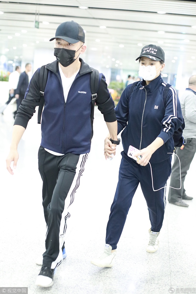 [真·皇后]聂远与老婆情侣装现身机场 十指紧扣