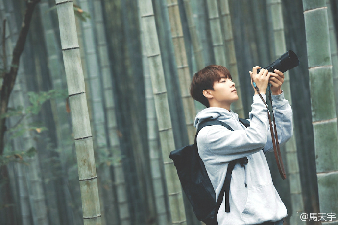10月15日,马天宇在自己微博上传一组照片,并配文称:“他拍。”照片中的他身穿白色卫衣上衣,手捧相机,在竹林中取景拍摄。他表情放松,看起来心情很好。