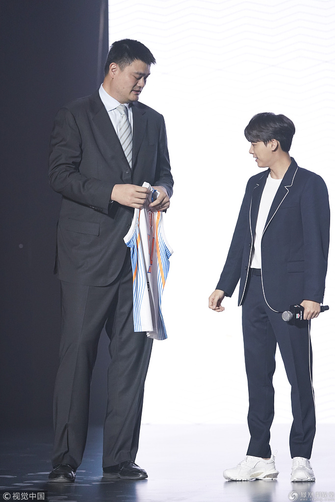 2018年10月18日,北京,18/19CBA前瞻,新赛季发布会召开,姚明领衔出席李易峰助阵。姚明和李易峰交流不同一海平面 ,二人组最萌身高差。