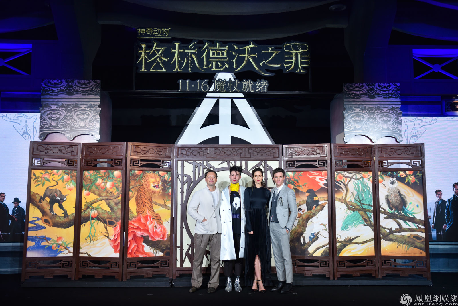 由《哈利·波特》作者J.K.罗琳全新创作的《神奇动物:格林德沃之罪》将于11月16日,在中国与北美同步上映。昨日影片在北京举行中国首映发布会,埃迪·雷德梅恩、裘德·洛、凯瑟琳·沃特森、埃兹拉·米勒等四大主演重磅亮相,瞬间引爆现场激情。几位主创亲切地在红毯与影迷互动,受到现场粉丝热烈欢迎!发布会上,众主创大曝台前幕后精彩故事。埃迪、凯瑟琳倾情解读纽特与蒂娜感情走向,裘德·洛揭秘不一样的年轻版邓布利多,埃兹拉爆料克雷登斯续作结交了患难与共的新朋友纳吉尼。埃迪大曝嗅嗅宝宝、中国神奇动物驺吾的新鲜萌料,主创点睛华美中国风神奇动物海报引人惊叹,超震撼点映片段获网友如潮好评。瑰丽神奇的魔法世界大门再启,一场震撼眼球的视觉盛宴即将来袭,电影将于11月16日中美同步上映,魔杖已就绪,走进影院一同感受魔法传奇!