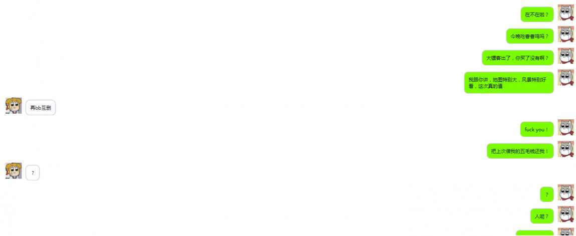 此时对面终于回话了,不想内容却是:“别瘠薄和我说话了!”