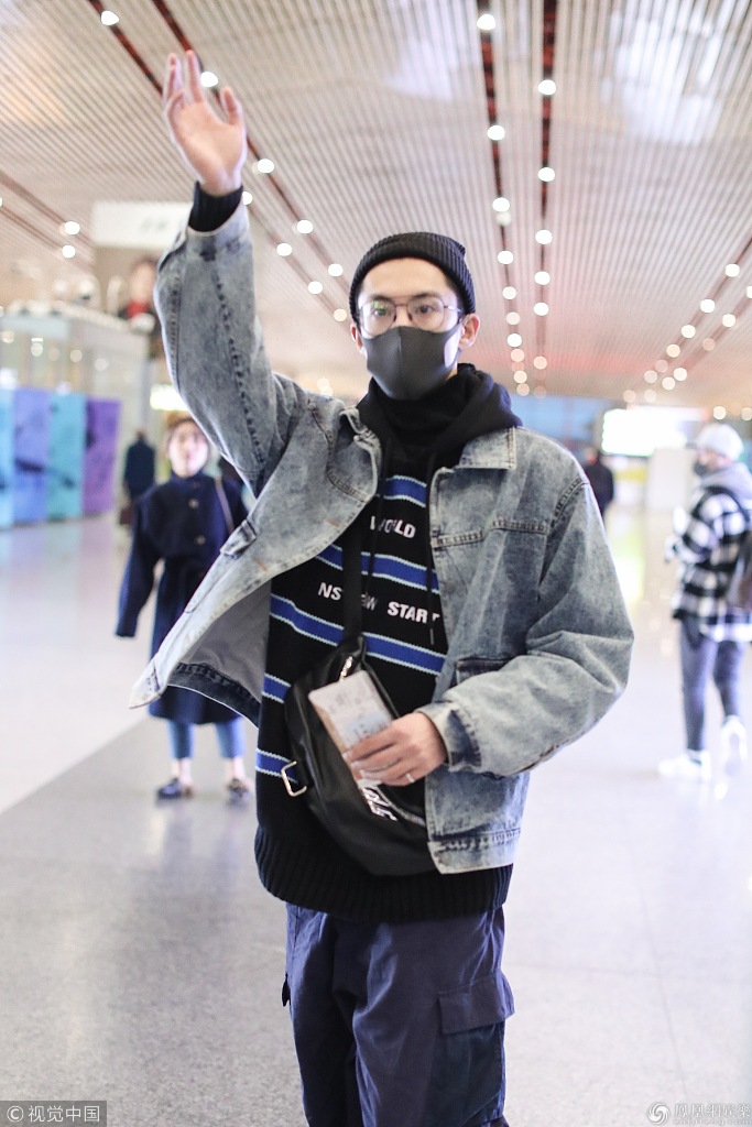 2018年11月23日,北京,王鹤棣现身机场。他头戴针织帽,身穿牛仔外套潮味足,露懵圈脸素颜现身显萌态。