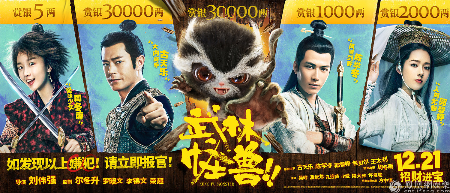 合家欢电影《武林怪兽》今日发布了“通缉令”版海报,古天乐、陈学冬、郭碧婷和周冬雨似乎捅下了什么娄子,遭到悬赏追捕。作为影片的幕后推手,导演刘伟强和监制尔冬升相识相知三十余年,才首次合作拍摄了《武林怪兽》,难怪有港片迷惊呼这对组合“简直是有生之年系列”。电影《武林怪兽》将于12月21日全国公映。