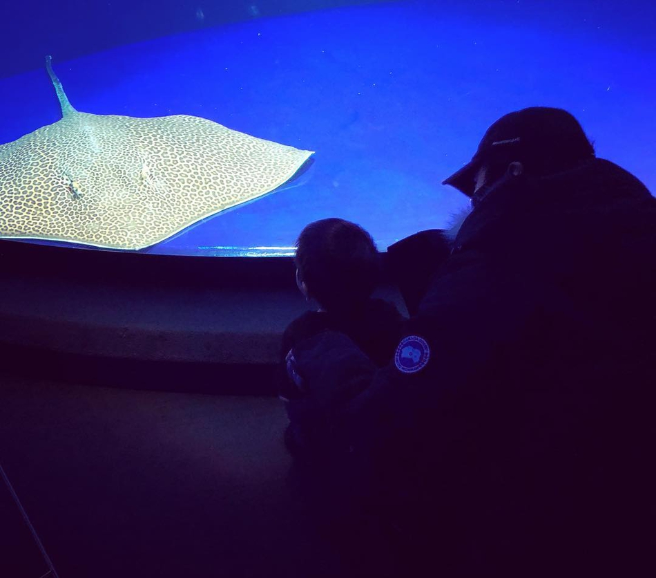 陈妍希晒一家三口旅行照 陈晓与小星星一脸认真看魟鱼