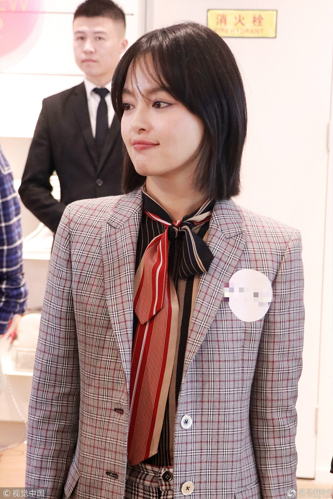 :2018年12月24日,上海,辛芷蕾出席某商业活动,她身穿格纹西装搭配标志性的“辛芷蕾”发型,妩媚又攻气,在现场喝香槟豪气一饮而尽显酒量。