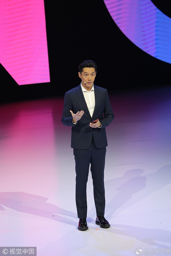2018年12月26日,北京,胡歌助阵某手机发布会。他一身帅气西装认真演讲化身“精英男”。