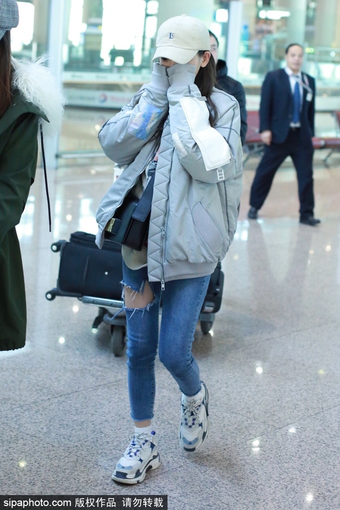 1月16日,北京,杨超越现身机场。她身穿灰色外套搭配破洞牛仔裤潮味足,全程捂嘴挡脸不愿见人,获人群簇拥人气旺。