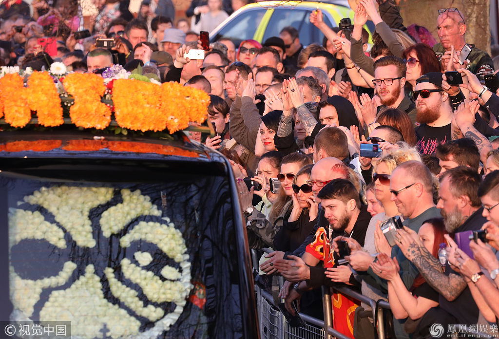 据视觉中国报道,3月29日,英国布伦特里,超凡乐队主唱基思·弗林特(Keith Flint)葬礼举行。昔日队友利亚姆Liam Howlett到场,女星Natalie Appleton、Mayumi Kai现身。