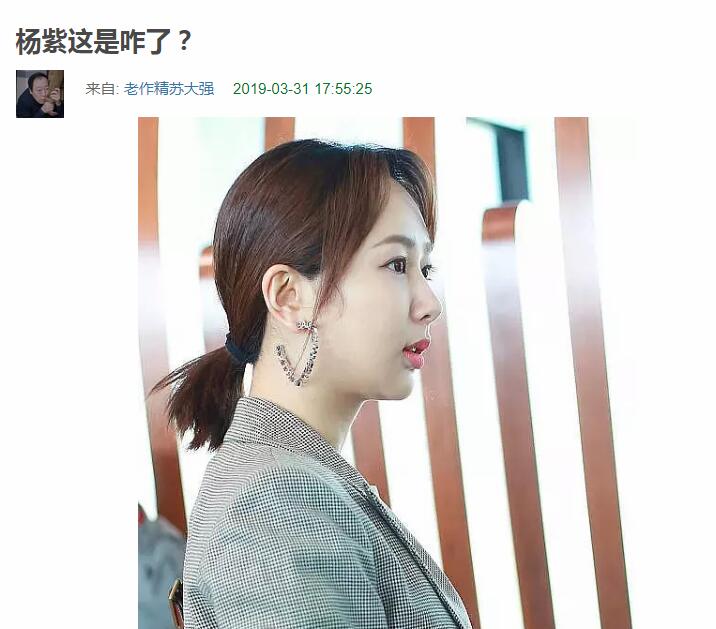 近日,杨紫的一组照片在论坛引发讨论。从照片中看出,杨紫的侧脸照略显浮肿,下巴线条不明显。有网友表示这是又打了几针吧,也有网友表示这是胖了。