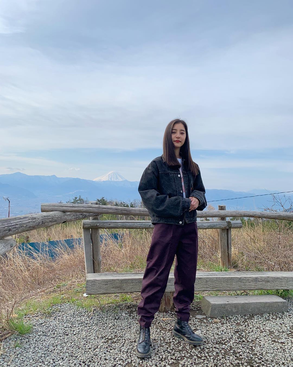 新木优子晒照长腿抢镜 与远处合影富士山调皮可爱