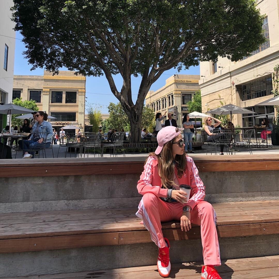 4月26日,昆凌最新街拍曝光,她身穿一身粉色运动服,反戴粉帽子,青春靓丽又甜美时尚。