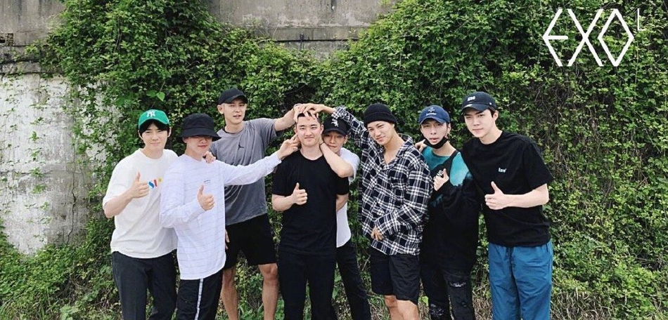 7月1日,EXO官方粉丝俱乐部上传成员们送都暻秀入伍大合照,全员出镜再现摸头杀。