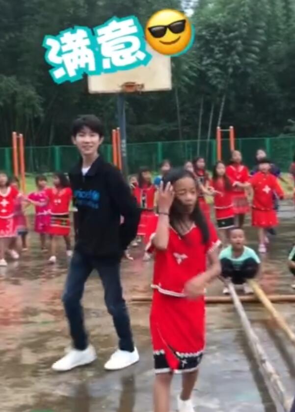 13日,有网友晒出一段视频,视频中王源正在和孩子们一起跳竹竿舞,十分可爱。