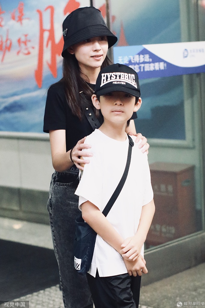 7月28日,北京,董洁带儿子顶顶现身机场。