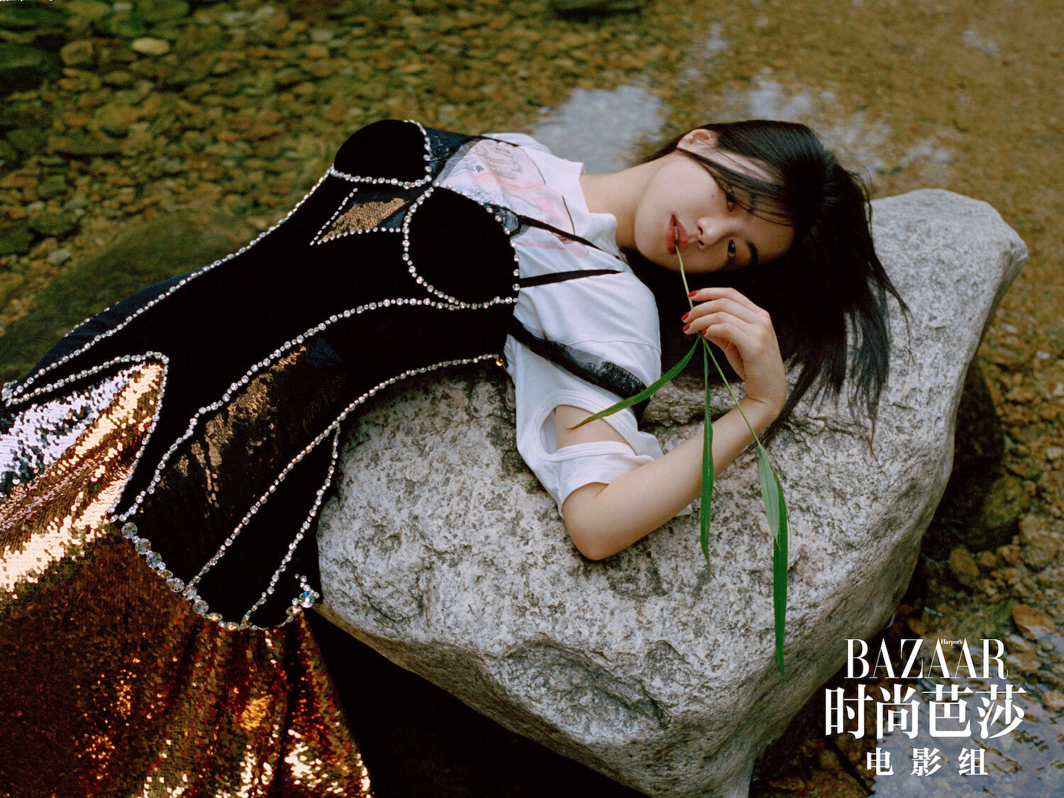 今日,新人演员李蔓瑄拍摄的一组大片曝光,游走在山水间,展现一直以来的酷女孩特质。李蔓瑄身着亮片连衣裙侧躺在石头上,眼神犀利,画面充满故事。或身着黑色大衣,手捧西瓜,好似一颗真心,充满了趣味。