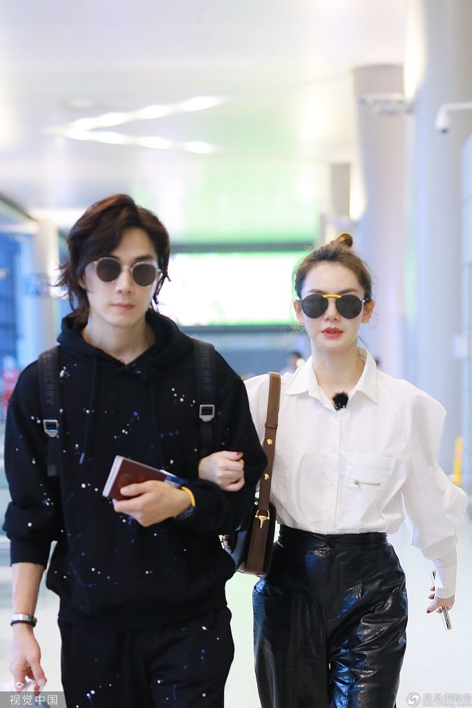 戚薇李承铉黑白配现身机场 挽手同行戴墨镜气场全开