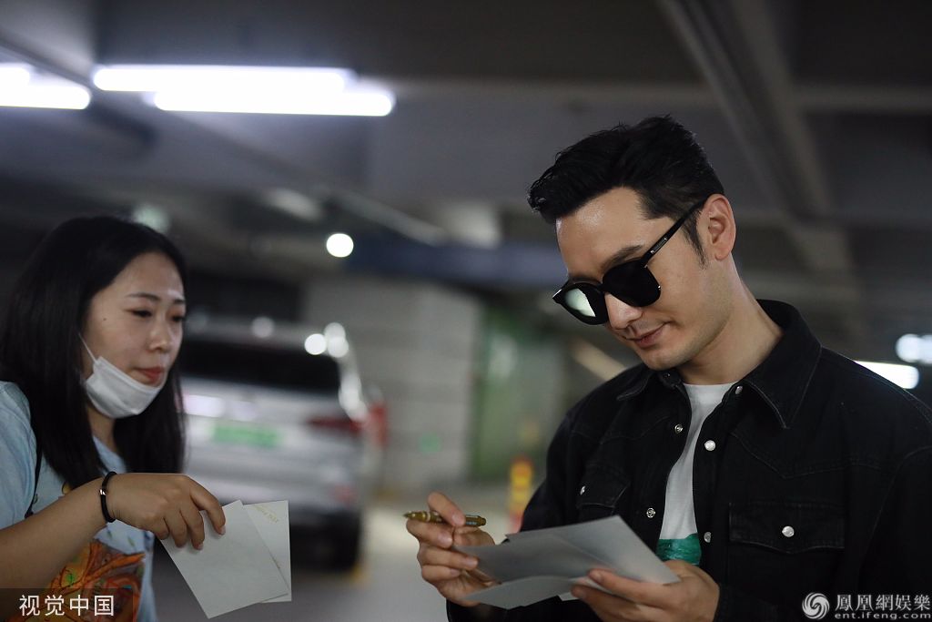 2019年8月20日,黄晓明现身上海机场。他穿着深色牛仔外套戴着墨镜,面带微笑给粉丝签名。