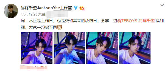 9月2日,易烊千玺工作室晒出一组他身穿白T搭黑裤拍摄的自拍照。