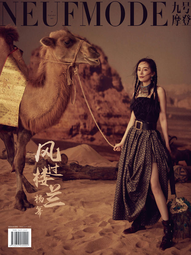 9月10日, 杨幂为《NeufMode九号摩登》杂志拍摄“风过楼兰”系列写真大片曝光。在西域大漠的黄沙深处,楼兰公主的面纱被风扬起,鲜少尝试民族风的杨幂,在这次的封面大片中诠释了另一种异域摩登时尚风情。
