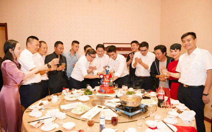 霍思燕杜江晒34岁生日聚会照 与两电影剧组同庆祝感情好