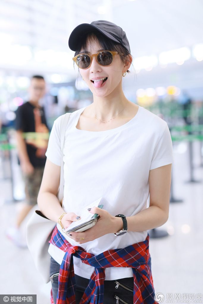 2019年9月15日,上海,张钧甯现身虹桥国际机场。她素颜现身戴着棒球帽身穿白T恤和牛仔裤,腰间系着格子衬衫十分随性。张钧甯推着行李架快走,不忘甜甜一笑十分可爱。 图片来源:签约供稿人/视觉中国