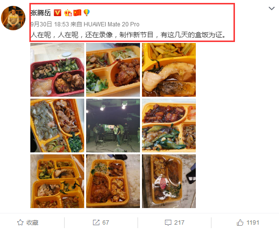 张腾岳自己快速发了微博回应大家的关心,表示已经开始制作美食节目了。网友调侃到“欢迎大家来到走进食堂栏目”。