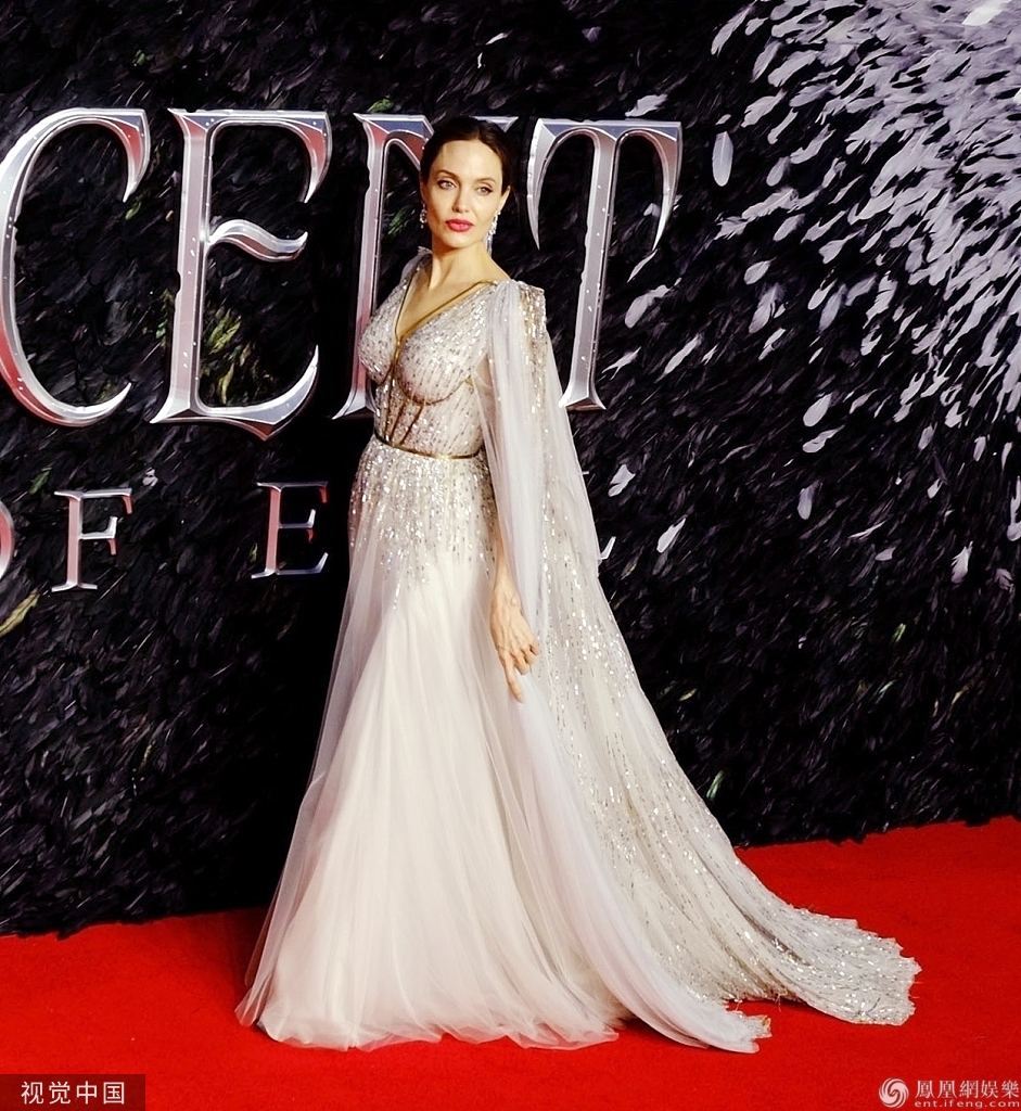 当地时间2019年10月9日,英国伦敦,电影《沉睡魔咒2》(Maleficent: Mistress of Evil)首映。 安吉丽娜·朱莉(Angelina Jolie)、艾丽·范宁(Elle Fanning)一同现身。
