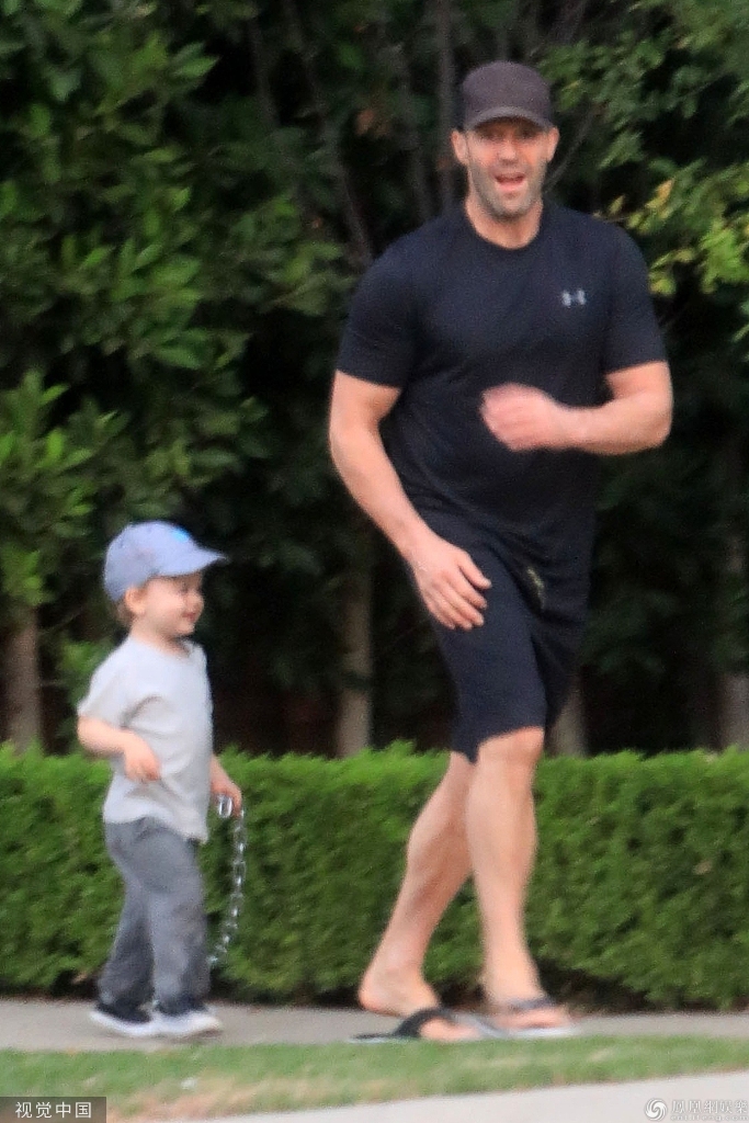 当地时间2019年10月21日,美国,杰森·斯坦森(Jason Statham)带儿子出街。