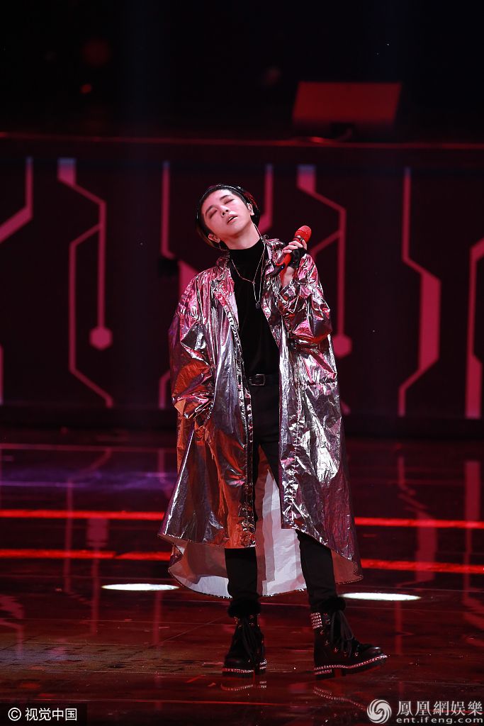 2019年11月10日,上海,2019天猫双十一晚会举行。华晨宇演唱《烟火里的尘埃》,银色外套罩体霸气十足。 图片来源:视觉中国/视觉中国