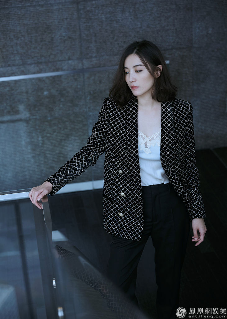 2019年11月17日,北京,宋佳出席电影《你是凶手》首映礼活动前拍摄写真。她穿金丝格纹黑西装气质干练帅气,内搭蕾丝花边吊带完美诠释了什么叫做“又美又飒”,随性干练又不失妩媚性感风情。 图片来源:视觉中国/视觉中国