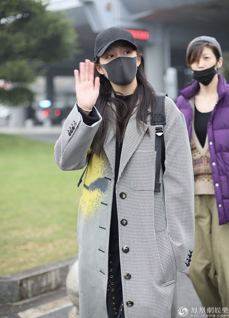 关晓彤戴帽子口罩穿浅色风衣搭机 获粉丝接机不忘挥手告别