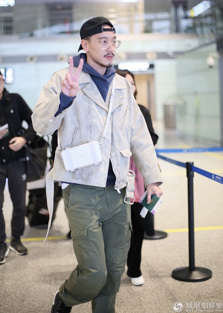 2019年12月18日,湖南长沙,王阳明现身机场,录完节目的他反戴棒球帽,架着黑框眼镜,留着络腮胡,一身型男装扮MAN爆,见跟拍也开心比V!