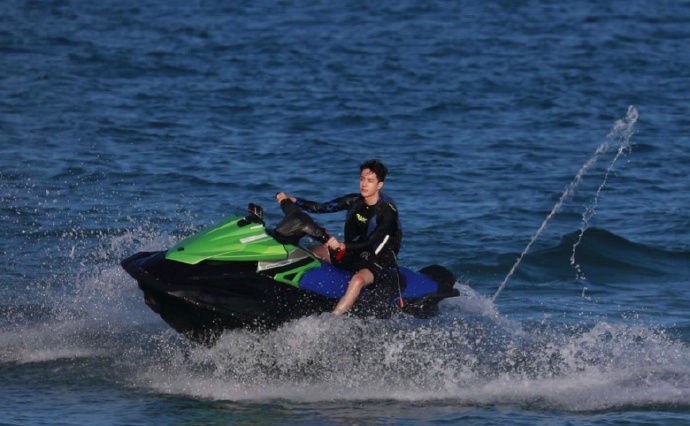 近日,王一博《夏日冲浪店》路透曝光,照片中在海上骑摩托艇酷炫拉风。