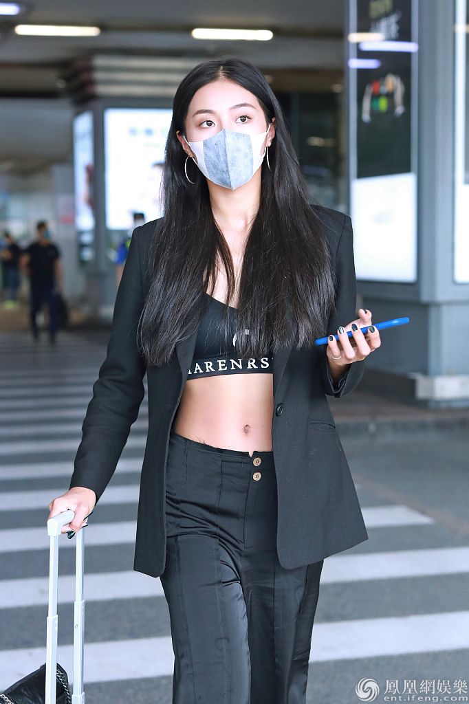 2020年5月22日,北京,万籽麟现身机场。她全黑look穿着露脐装大方炫腹,搭配西装化身大女主气场超级slay。