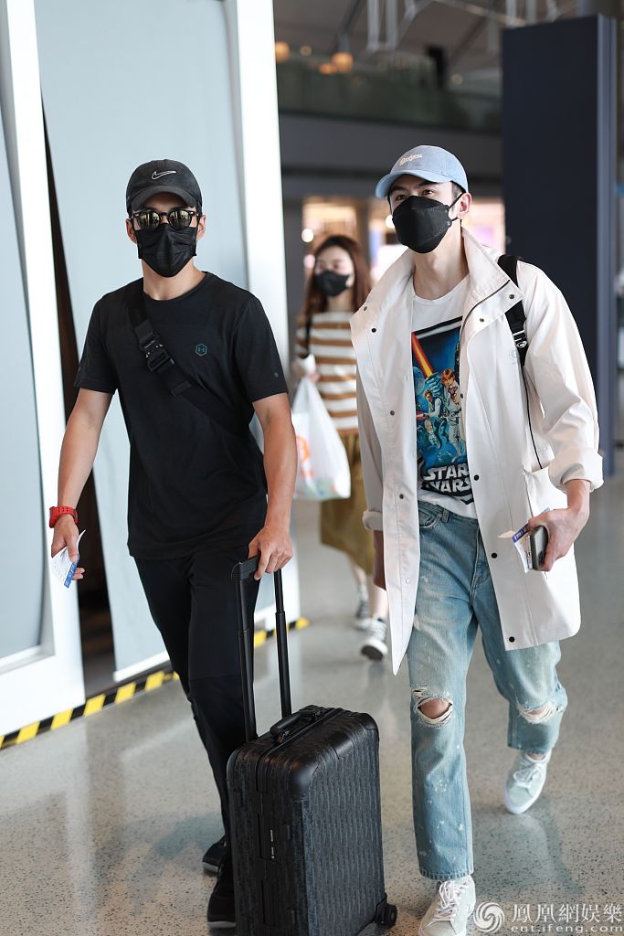 2020年5月24日,上海,张云龙与韩东君机场相遇,两人拍肩搭背唠嗑,相见甚欢,兄弟情深。张云龙身穿破洞牛仔裤外罩白色长款风衣,大长腿抢镜,发现记者拍照用手指镜头,瞪眼表惊讶。韩东君则一身全黑look酷帅有型。