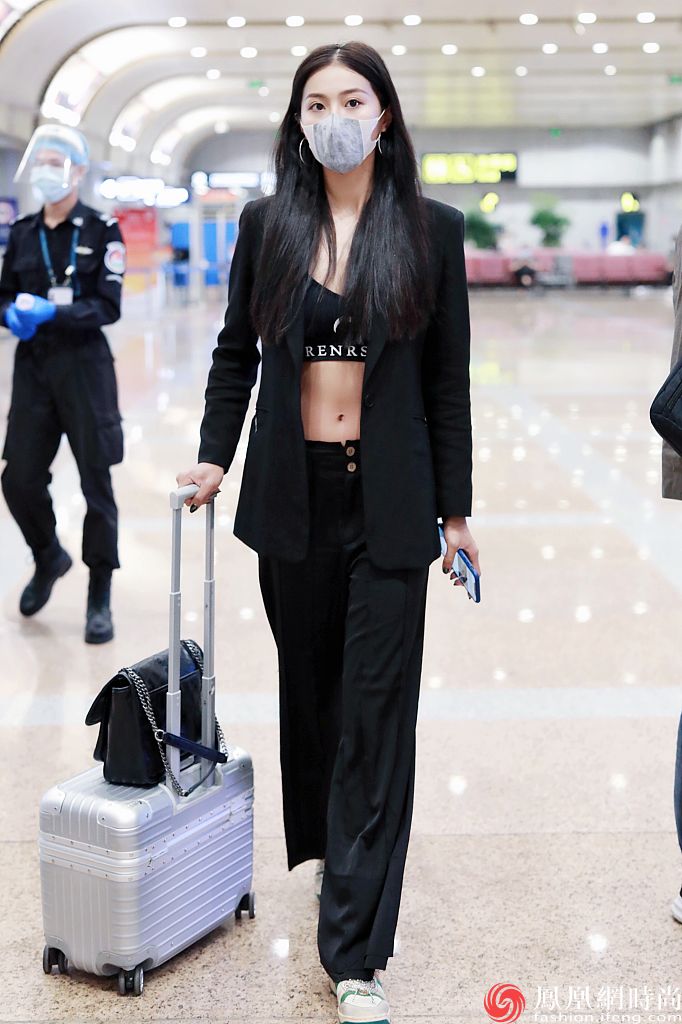 屈楚萧前女友万籽麟日前亮相机场,一身全黑露脐装大秀好身材。