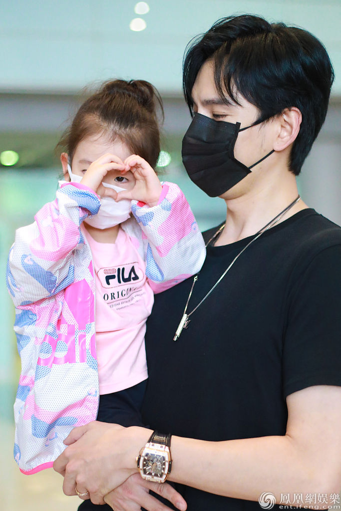2020年6月1日,北京,经超现身机场。经超在线教女儿学比心,萌娃乖巧配合暖化人心。