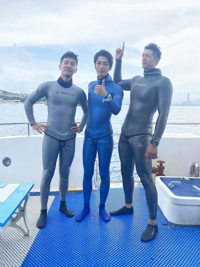 6日,陈学冬晒出和黄景瑜、盛一伦的潜水照,调侃自己第一批学员成功晋级自由潜水员,并相约保护海洋。