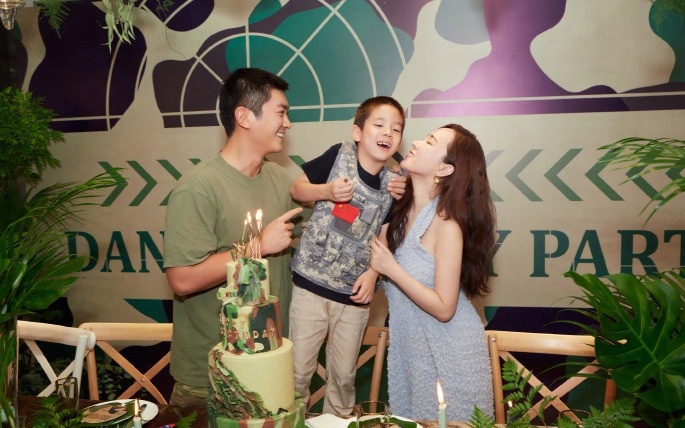 9月19日是杜江霍思燕儿子嗯哼的7岁生日,夫妻俩为嗯哼举办了迷彩风的生日派对。