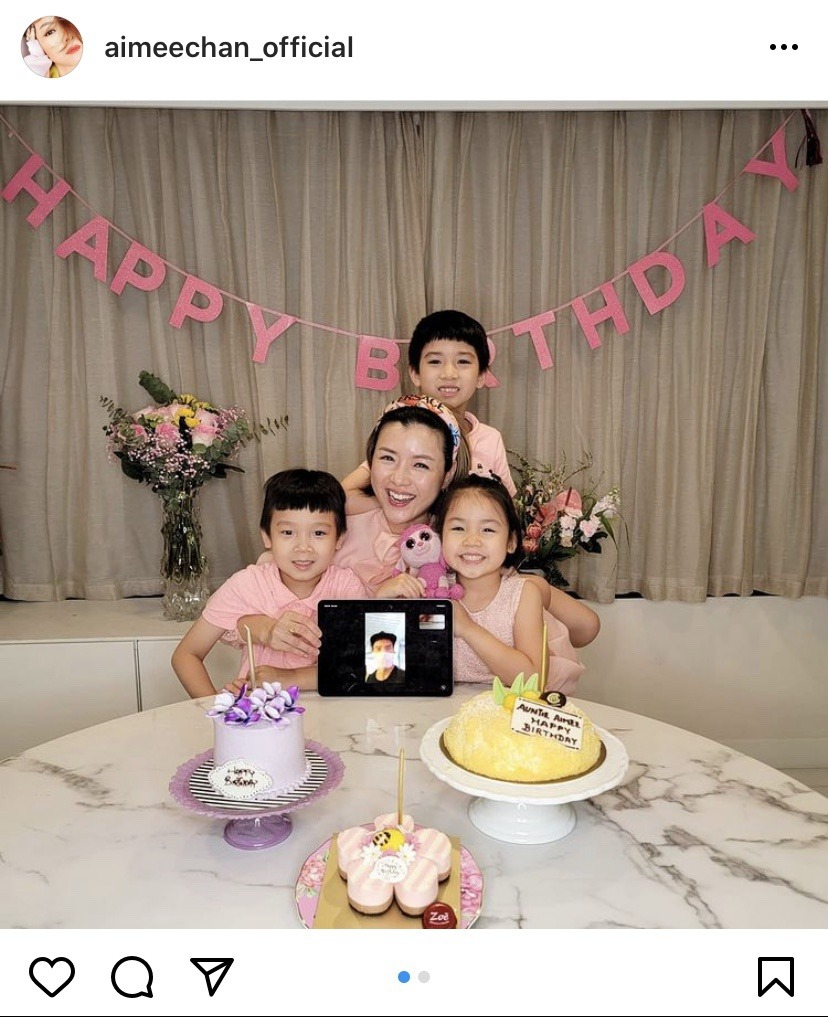 4月1日,是陈茵媺生日,她在社交平台晒出儿子女儿共同为她庆生的照片。