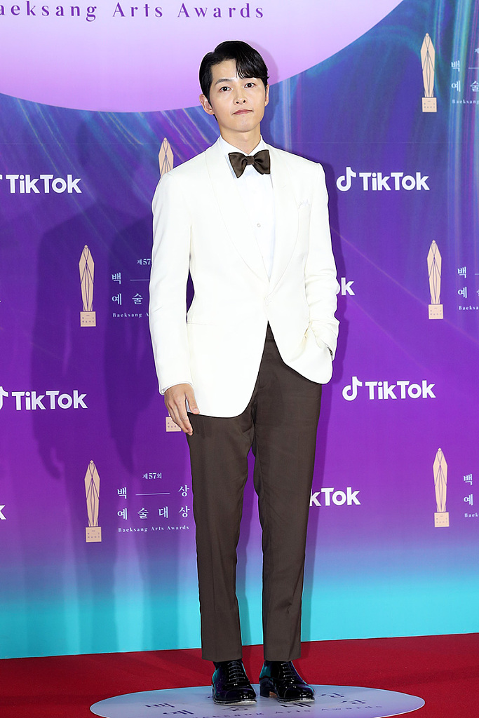 2021年5月13日,韩国,宋仲基、李昇基、金秀贤、郑秀晶、李准基等出席第57届百想艺术大赏。图为宋仲基。