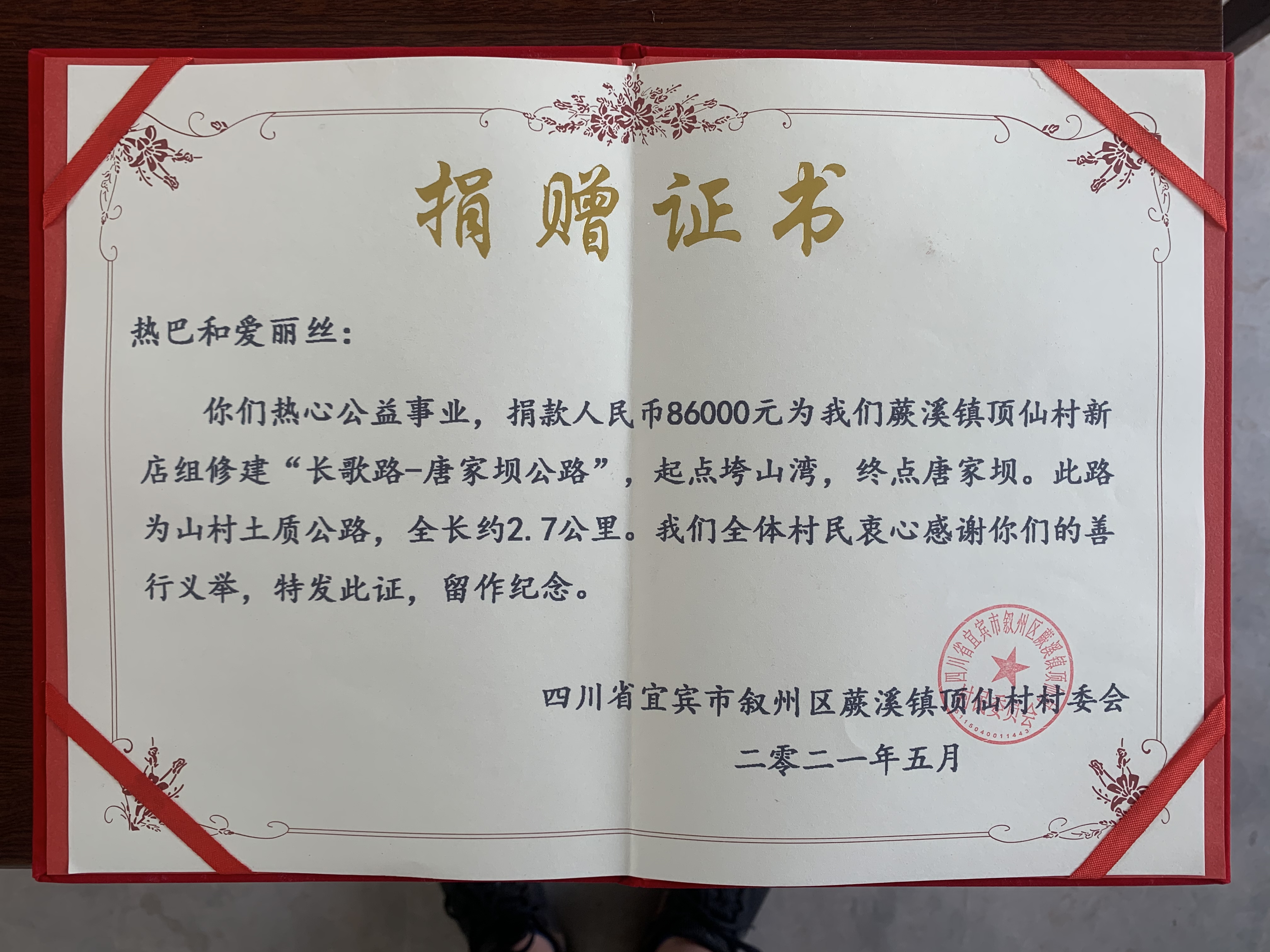据了解,由于热巴是“孝心工程·青春伴夕阳 爱心宣传大使”,所以粉丝们特地投放了6万余份以孝亲敬老为主题的公益包裹广告,号召人们关爱老龄人口。同时,他们还在四川山区修建了以热巴饰演的角色”李长歌“命名的【长歌路-唐家坝】路、为山区学生、留守儿童们举办了六一儿童节的节日宴等等。