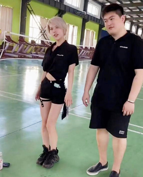 赵一楠身边的女孩也是一身黑色休闲装,五官精致面带笑容,一头利落的短发染成了白色,身材纤细露着小蛮腰时尚性感,二人亲密互动,十分甜蜜。