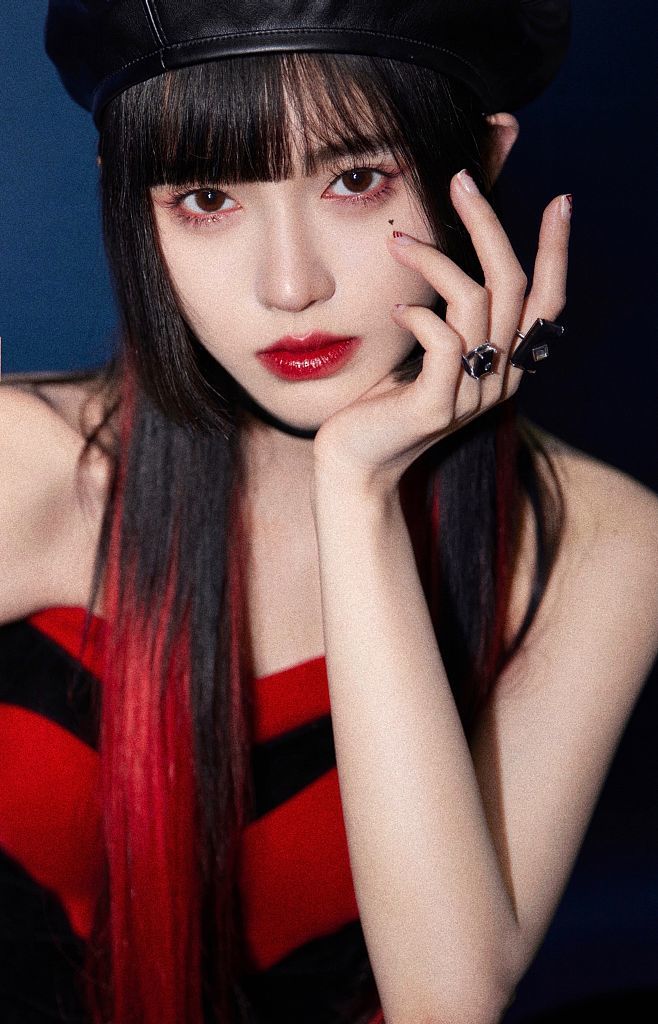 鞠婧祎红发挑染造型魅惑满分 贝雷帽公主切化身“小魔女”