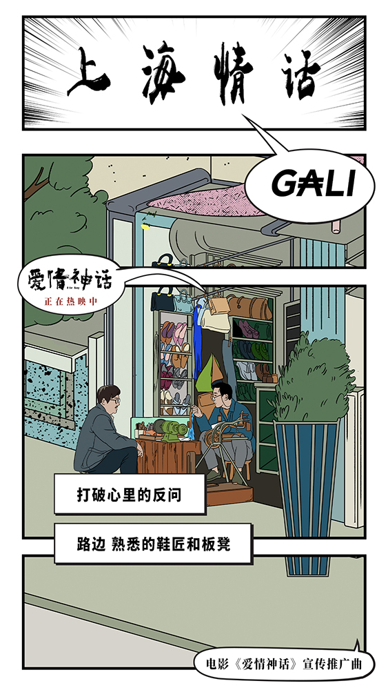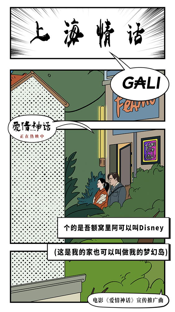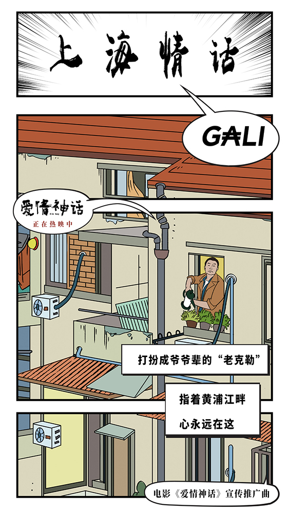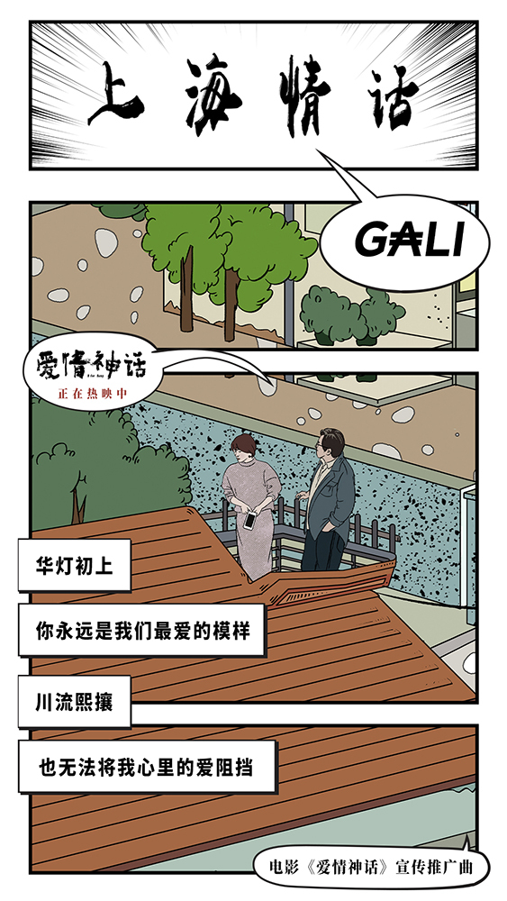 早在上海特别放映时,GALI作为受邀嘉宾和现场观众一同揭开了《爱情神话》的神秘面纱,他表示:“我是土生土长的上海人,影片中的对白、取景的地方,就是我小时候生活的地方,感觉很亲切很怀念。”在宣传推广曲中,GALI提炼出上海这座摩登之都气质的“里”与“面”,歌词韵脚从川流熙攘的淮海路一直延伸到五原路的弄堂深巷,包罗万象细节生动与“爱神”生活流风味呼应。