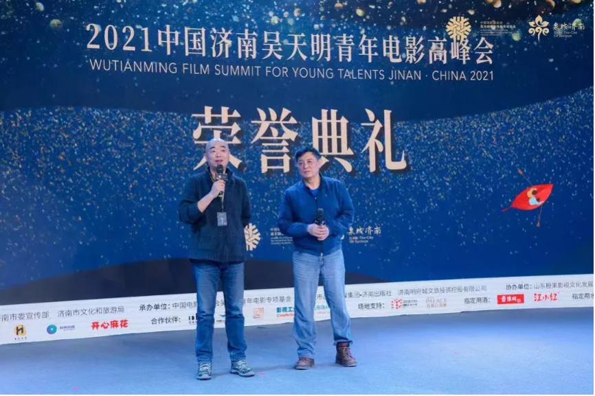 济南第五天,吴天明青年电影高峰会圆满举办了五届。经过1月3号、4号的路演培训,1月6日早上九点半到下午六点,15个入围优秀青年电影导演项目的项目方,在济南国际时尚创意中心的热恋厅进行了项目路演。6日晚上举行的融创会•荣誉典礼,由终审评委著名制片人方励先生,和著名导演郑大圣先生,作为终审评委会代表对青年创作者们送出寄语。
